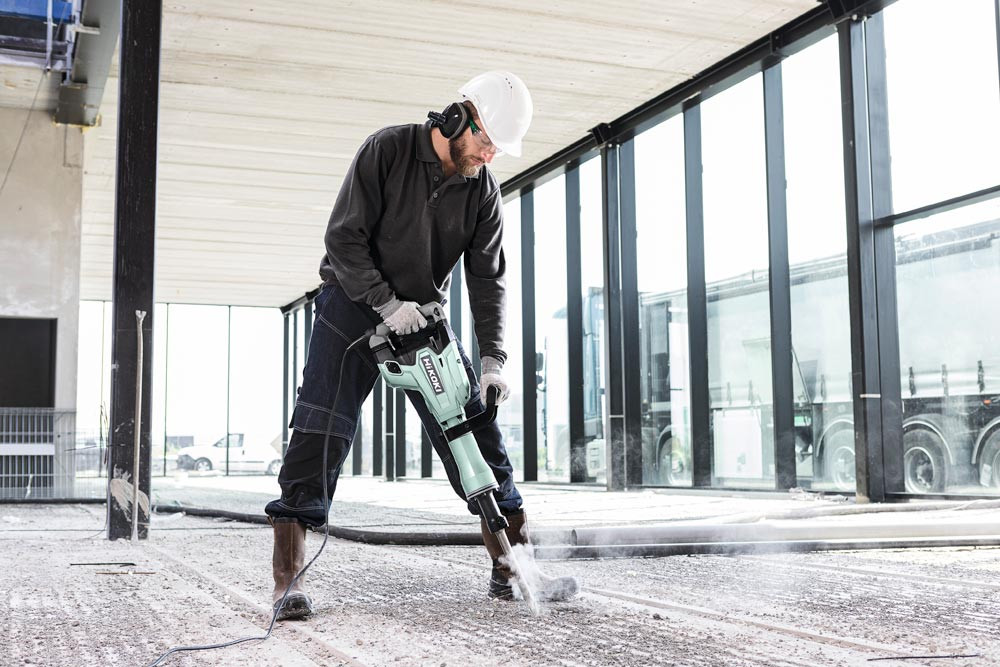 Abbruchhammer mit hoher Abbruchleistung ∙ Optimierter Schalter mit großer Grifffläche für einfaches Handling ∙ Antivibrationssystem (UVP) ∙ 360° rundum verstellbarer Soft-touch Zusatz-Handgriff ∙ 30 mm Sechskant-Werkzeugaufnahme ∙ Doppelisolationskonstruktion mit Kunststoff-Innenteil und Aluminium-Druckgussgehäuse ∙ Antivibrationshandgriff