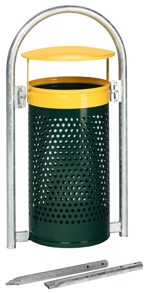 Abfalbehälter, Außeneinsatz, ohne Ascher, Kopfteil/RAL 1023/RAL 6005, Vol. 65 l, BxTxH 580x380x1165 mm, zum Einbetonieren