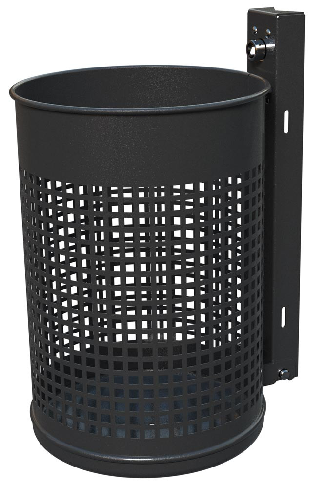 ∙ Gefertigt aus Stahlblech ∙ Gelochter Korpus ∙ Geeignet zur Wand- und Pfostenmontage ∙ Volumen ca. 20 oder 50 l ∙ Behälter-Ø 265 oder 370 mm, Höhe 410 oder 520 mm ∙ Gewicht inkl. Befestigungsschiene ca. 4,0 oder 5,5 kg ∙ Erhältlich in feuerverzinkt oder feuerverzinkt und zusätzlich pulverbeschichtet ∙ Lieferumfang: Abfallbehälter, Befestigungsschiene und Schlüssel (Befestigungsmaterial siehe Zubehör)