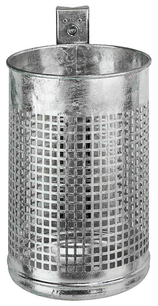 Abfallbehälter 20 l, Ausf. gelocht, DxH. 265x410 mm, inkl. Befestigungsschiene + Dreikantschlüssel, feuerverzinkt EP525867