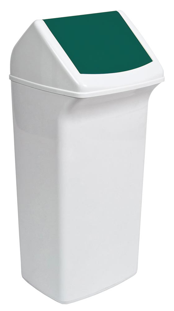 Abfallbehälter mit schwenkbarer Einwurfklappe im Deckel, Volumen 40 l, BxTxH 320x366x747 mm, Farbe weiß/grün