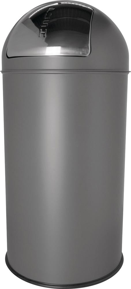 Rumpf und Haube aus pulverbeschichtetem Stahlblech oder Edelstahl · mit verzinktem Metall-Inneneimer · mit Push-Einwurfklappe · der Gummibodenring schützt Boden und Teppiche
