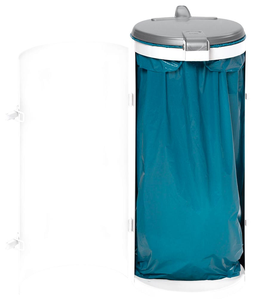 ∙ Für 120 l Kunststoff- oder Papiersäcke ∙ Hergestellt aus verzinktem Stahl ∙ Pulverbeschichtet ∙ Mit Einflügeltür ∙ Boden mit Lochung zur diebstahlsicheren Befestigung ∙ Innen und Außen einsetzbar ∙ Höhe 900 mm ∙ Durchmesser 450 mm ∙ Ø Einwurföffnung 350 mm
