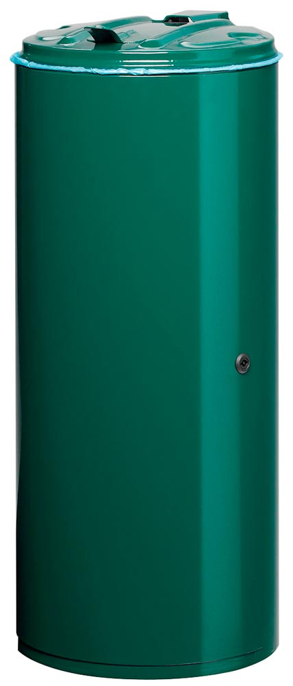 Abfallsammler, Vol. 80 l, Durchm.xH 390x895 mm, kpl. lackiert RAL 6005, inkl. verschließbare Tür mit Doppelbartschloss