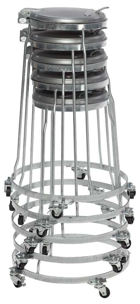 ∙ Stapelbare Ständer aus Stahl, feuerverzinkt ∙ Besonders standfest ∙ Deckel aus Kunststoff in silber (Einwurföffnung Ø 350 mm) ∙ Auf Anfrage, gegen Aufpreis, auch mit verzinktem Metalldeckel lieferbar