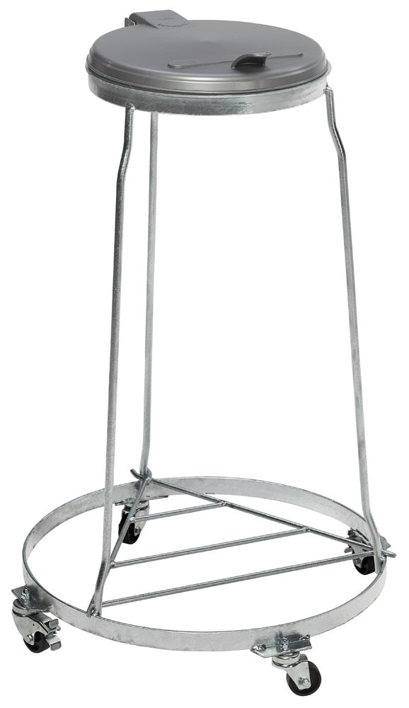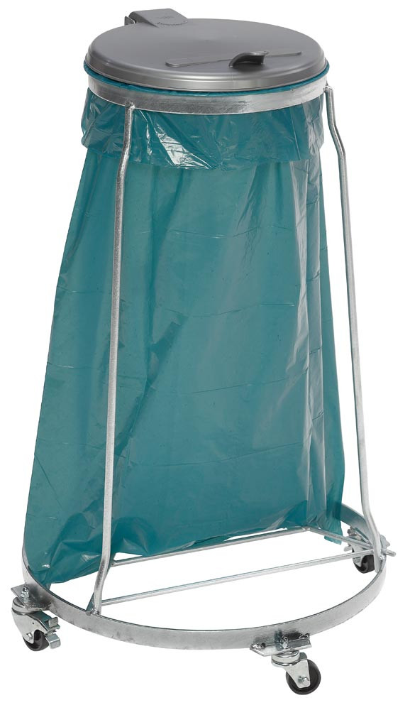 Abfallsammler, fahrbar, für 120-l-Müllsäcke, verzinkt, Deckel grau, aus Kunststoff, Durchm.xH 400/640x980 mm
