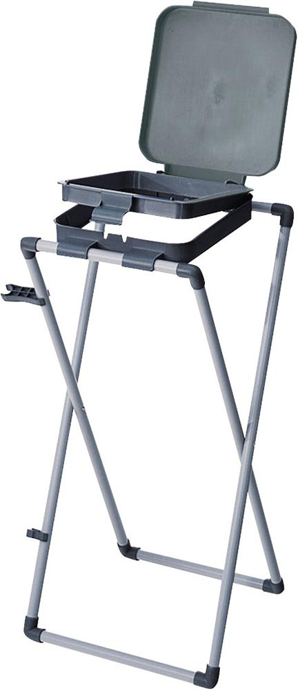 stabiles Leichtmetallrohr, grau · komplett mit Halterung, Einspannrahmen zum Einspannen von 60-/70-l-Säcken · grauer Klappdeckel · mit beiliegenden Verbindungsklemmen können mehrere Ständer zu einer Sammelstation verbunden werden