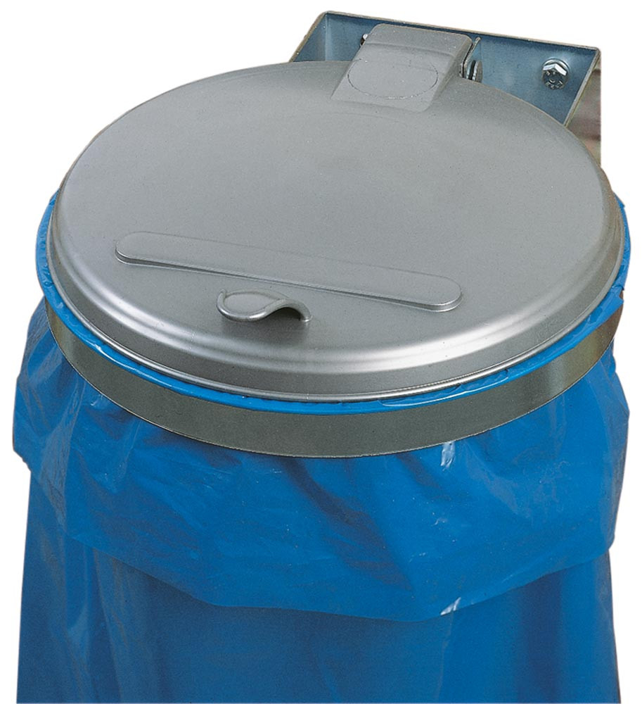 Abfallsammler zur Wandbefestigung, verzinkt, Deckel silber aus Kunststoff, BxTxH 400x510x70 mm