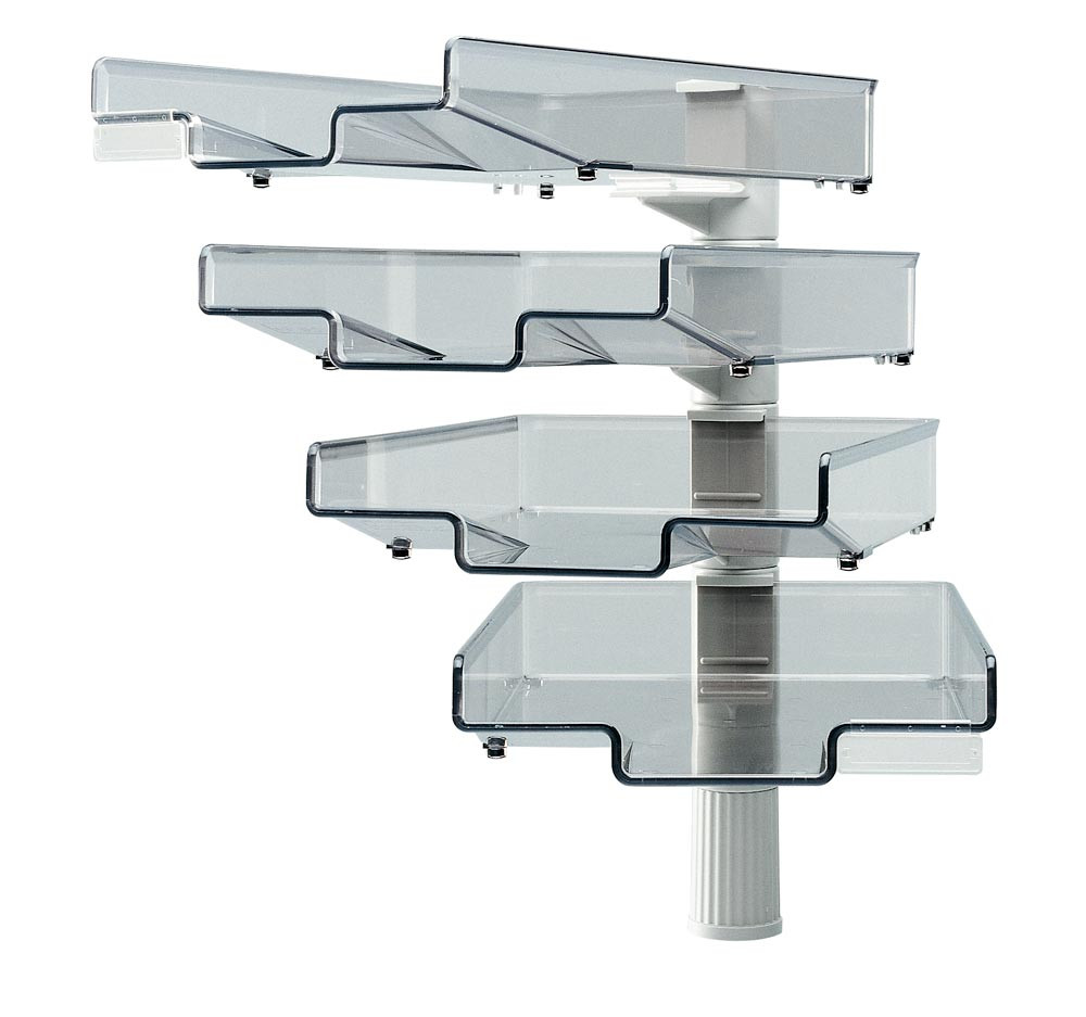Ablagekorb-Tischständer, BxTxH 270x370x500 mm, 4 Kunststoffschalen transparent, Ständer lichtgrau EP522448