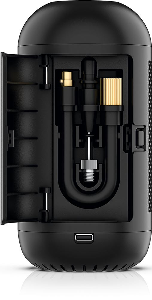 Akku-Luftpumpe ideal für unterwegs ∙ LED-Display ∙ Fünf Modi zum Aufpumpen ∙ Automatische Abschaltung wenn der eingestellte Wert erreicht ist ∙ Druckanzeige in bar oder psi ∙ Max. Aufpumpdruck 10,3 bar/150 psi ∙ Max. Leistung 55 W ∙ Lieferung mit den gängigsten Ventilaufsätze, Luftschlauch und USB-C Ladekabel