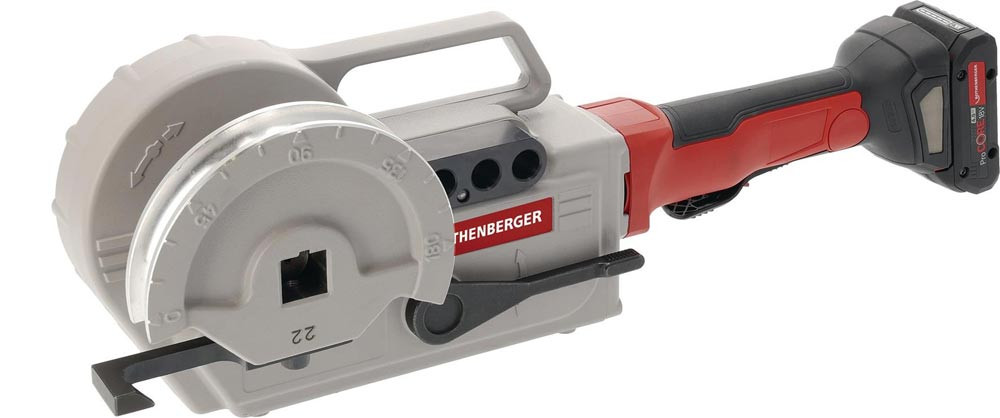 robustes Akkurohrbiegegerät zum Biegen bis 180° · deformations- und faltenfreies Biegen durch patentierte ROLUB-Technologie für eine besser Gleitfähigkeit des Biegeschuhs · werkzeuglose Voreinstellung des Biegewinkels · automatische Abschaltung beim Erreichen des gewünschten Biegewinkels - ideal für die Serienherstellung von immer gleichen Bögen · Biegeradius 42 - 112 mm (für bis zu 60 Biegungen mit 28 mm Kupferrohr) · Bürstenloser Motor für verschleißfreies Arbeiten und lange Lebendsdauer · Akku (System CAS/AMP) Antrieb: für kabelloses Arbeiten und erhöhte elektrische Sicherheit · universell einsetzbar in der Sanitär- und Heizungsinstallation, im Rohrleitungsbau, der Kälte- und Klimatechnik, Industrie sowie für die Serienfertigung.