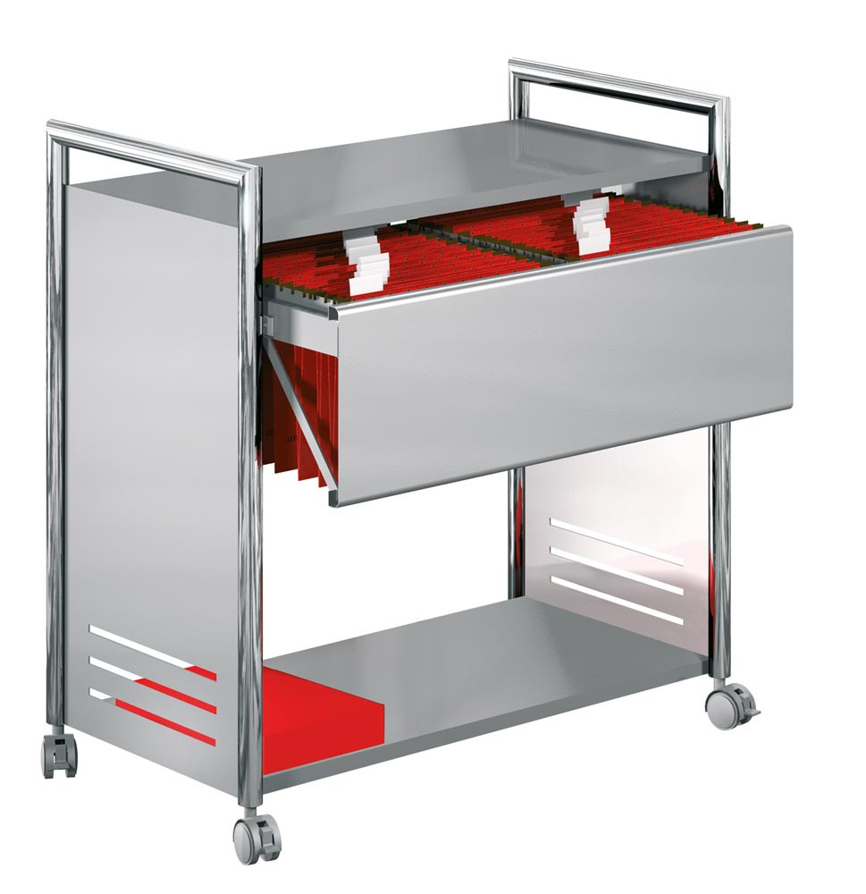Aktenwagen, 1 Boden, 2 Hängeregistraturen, LxBxH 815x435x800 mm, chrom/silber EP517835