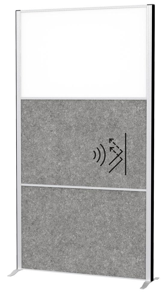 Akustik-Stellwand, BxTxH 1000x44x1800 mm, 3x Textil, hellgrau EP561293