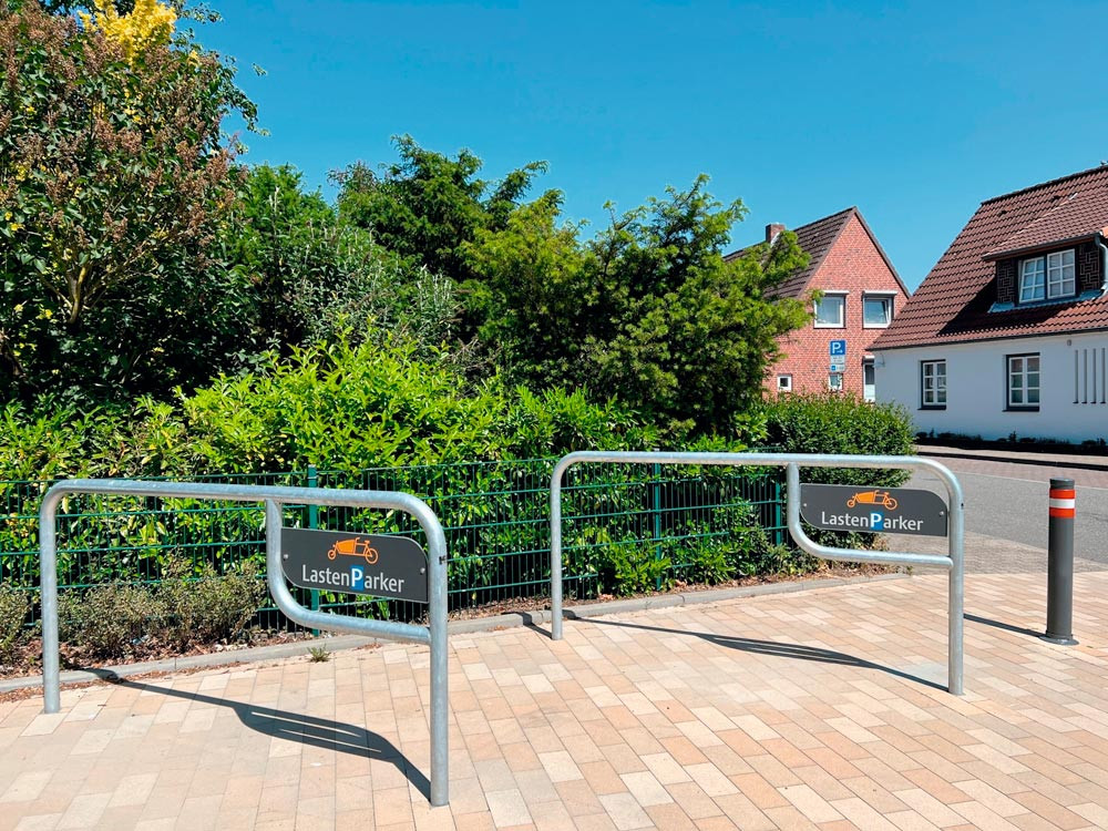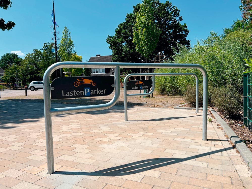 Anlehnbügel für Lastenfahrräder, Stahlrohr D 60 mm, verzinkt, zum Einbetonieren, ohne Schild, B x H 2100 x 1060 mm