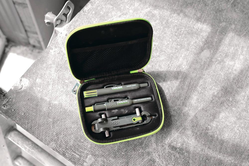 Lieferumfang: 1 Munltifunktionswerkzeug, 1 Tiefloch-Bleistift mit Scheide und Anspitzer, 1 Ersatzminenmagazin mit 6 Graphit-Minen, Lieferung in hochwertiger Tragetasche