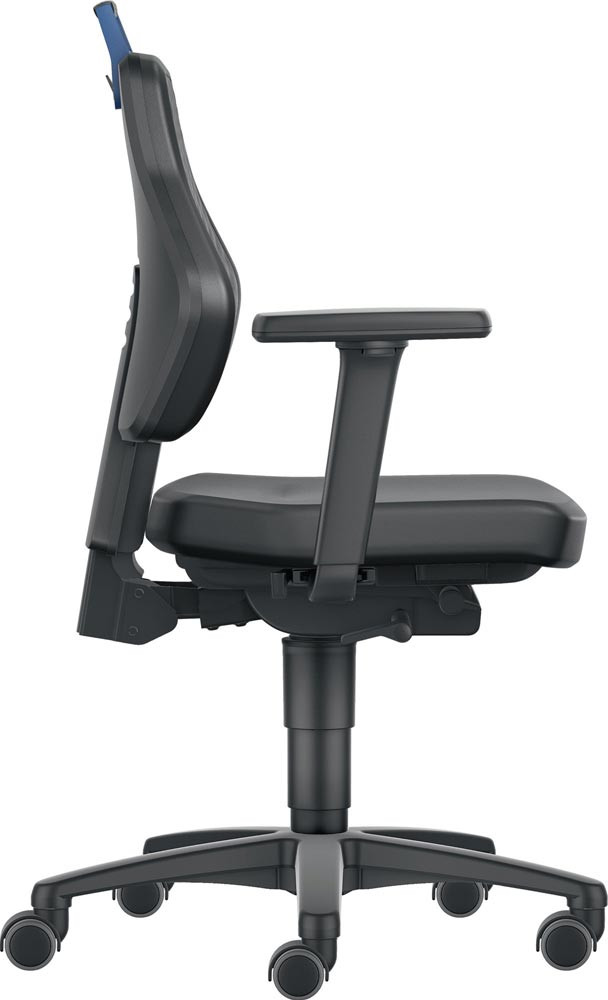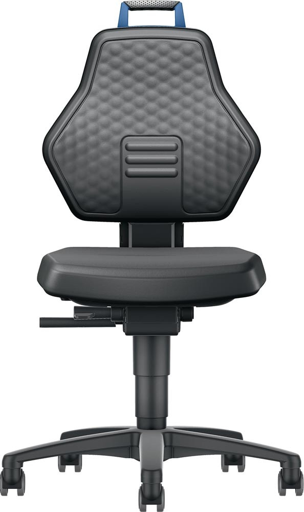 Arbeitsdrehstuhl Rollen Kunstleder schwarz Grifffarbe blau 450-600 mm