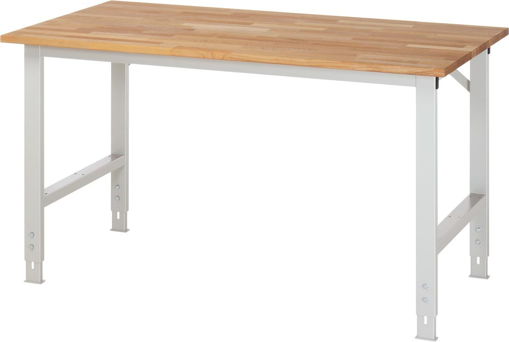 · Höhe: 760 - 1080 mm einstellbar · Flächenlast max. 500 kg · Stabiler Funktionsunterbau mit Gestellfüßen aus Profilstahlrohr (60 x 30 x 2 mm) inkl. Tiefenverstrebungen (oben und unten) und integrierter Höhenverstellung · Aussteifungstraversen (hinten) ∙ Umweltfreundliche Pulverbeschichtung: Gestell in RAL 7035 lichtgrau