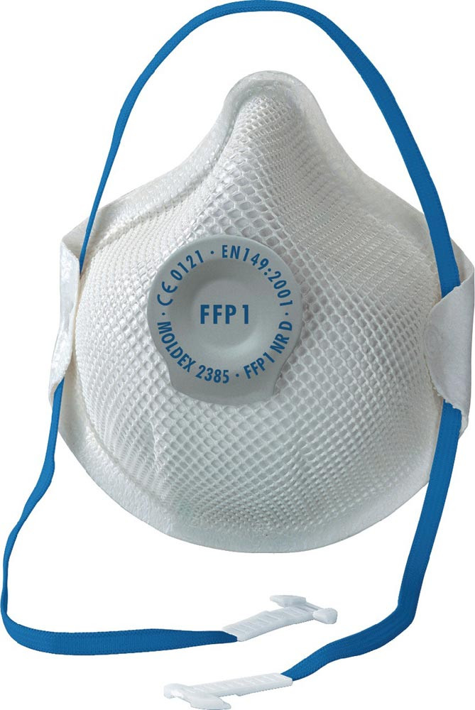 gegen ungiftige Stäube und Aerosole auf Wasser- und Ölbasis · bis zum 4-fachen des AGW · nicht gegen CMR-Stoffe und radioaktive Stoffe sowie luftgetragene biologische Arbeitsstoffe der Risikogruppen 2 und 3 und Enzyme · zugelassen für Filterklasse FFP1 / V NR D¹ · DIN 149:2001 + A1:2009 · mit Klimaventil und Dichtlippe im Nasenbereich