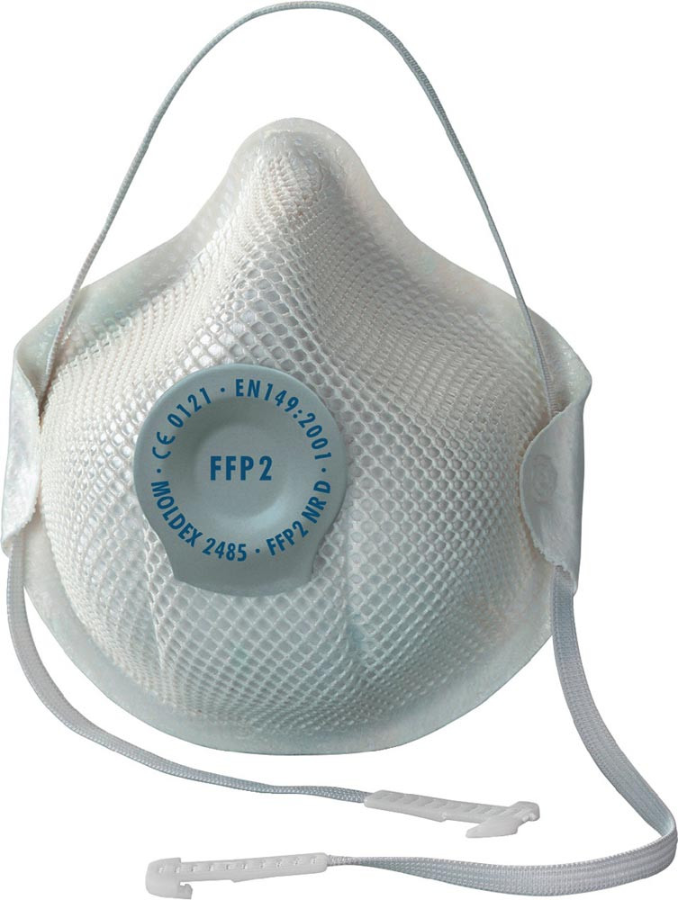 gegen gesundheitsschädliche Stäube, Rauch und Aerosole auf Wasser- und Ölbasis · bis zum 10-fachen des AGW · nicht gegen CMR-Stoffe, radioaktive Stoffe und luftgetragene biologische Arbeitsstoffe der Risikogruppe 3 und Enzyme · zugelassen für Filterklasse FFP2 / V NR D¹ · DIN 149:2001 + A1:2009 · mit Klimaventil und Dichtlippe im Nasenbereich