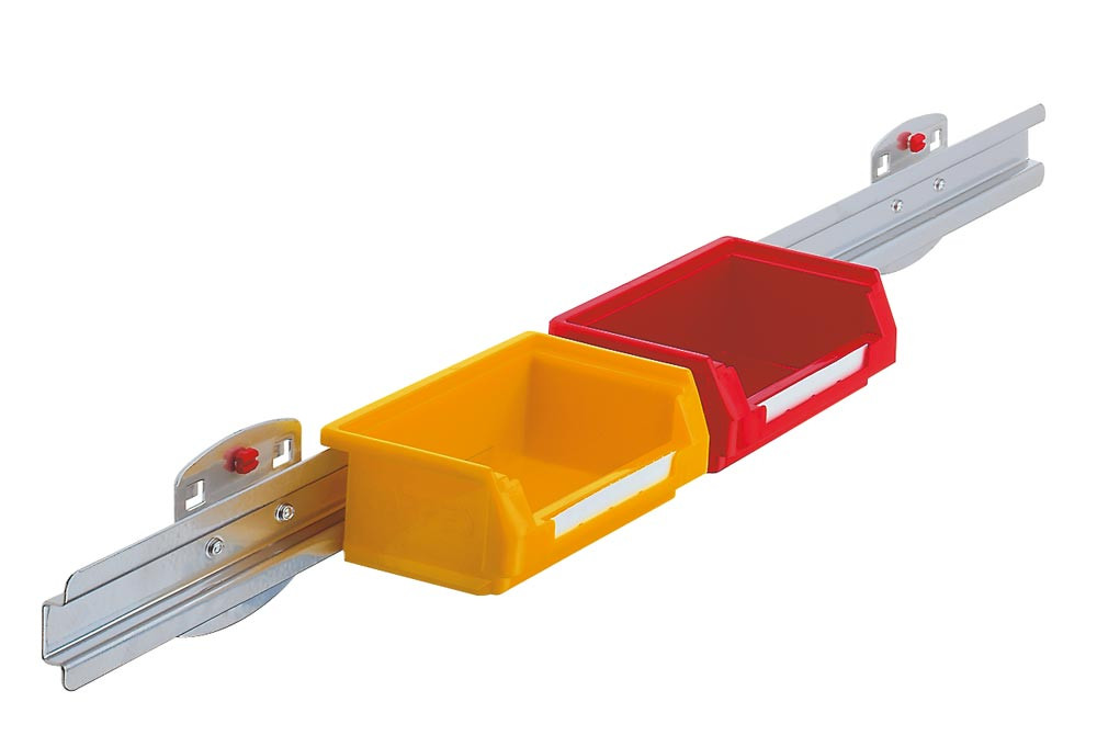 Aufhängeschiene für 5 Lagersichtkästen Größe 7, Länge 550 mm, ähnlich RAL 9006 aluminium