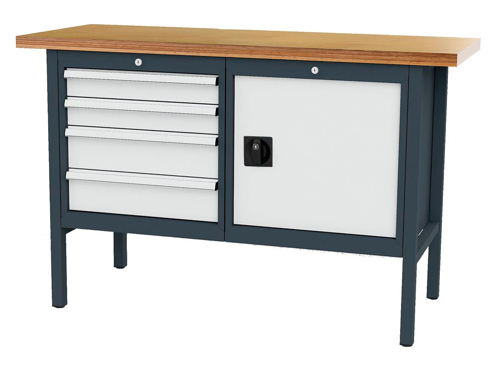 Baukastenwerkbank, Pl. Multiplex 40 mm, 2 Bl., Türe 1x500 mm, Schubl. li 2x100, 2x150 mm, BxTxH 1500x600x960 mm, 7016/7035 EP560912