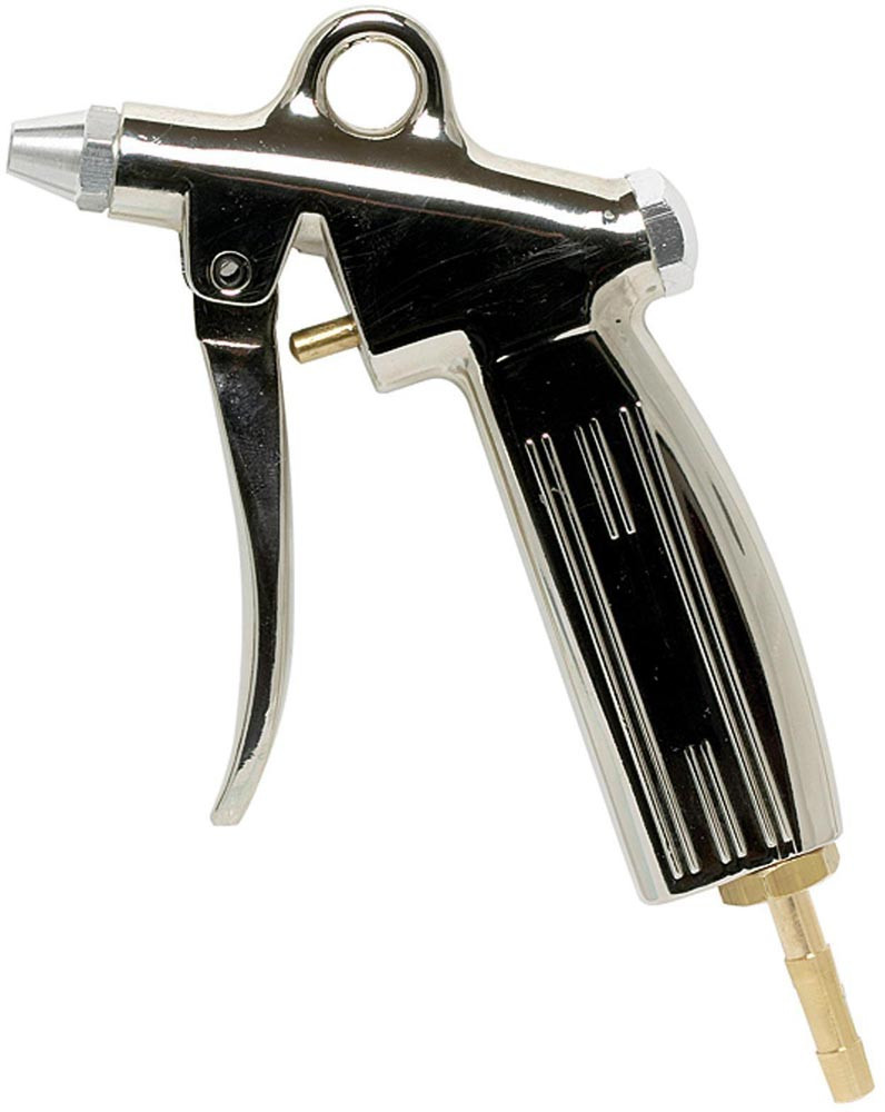 Blaspistole mit Standarddüse Bohrung 1,5 mm · Aluminium-Druckguss vernickelt · Temp. -10 °C bis 50 °C · PN max. 10 bar · Tülle LW 13 Standardausführung. Zum Ausblasen und Reinigen von Maschinen · Werkstücken · Bohrungen · Hohlkörpern usw.