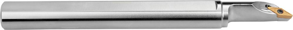 Dreh-Bohrstange mit Schraubklemmung zum spannen von 35° Rhombus positive Wendeschneidplatten mit einem Innenkreisdurchmesser von 6.35mm · 3.18mm Dick (ISO Bezeichnung VB.. 1103.. ) · linke Ausführung zum 93° Stirndrehen mit abgesetzem Schaft · Stahl mit Kühlkanalbohrung · 25mm Durchmesser x 250mm Länge für Stirnkopierdrehen