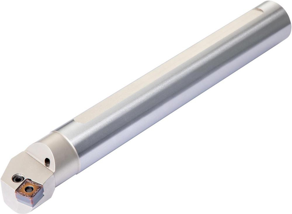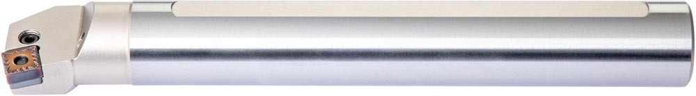 Dreh-Bohrstange mit Kniehebelklemmung zum spannen von Viereckig negative Wendeschneidplatten mit einem Innenkreisdurchmesser von 19.05mm · 6.35mm Dick (ISO Bezeichnung SN.. 1906.. ) · rechte Ausführung zum 75° Längsdrehen mit abgesetzem Schaft · Stahl mit Kühlkanalbohrung · 50mm Durchmesser x 350mm Länge für Innenkegeldrehen und Längsdrehen ohne Schulter