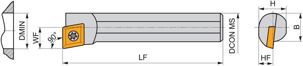Dreh-Bohrstange mit Schraubklemmung zum spannen von 80° Rhombus positive Wendeschneidplatten mit einem Innenkreisdurchmesser von 6.35mm · 2.38mm Dick (ISO Bezeichnung CC.. 0602.. ) · linke Ausführung zum 90° Längsdrehen mit abgesetzem Schaft · Stahl ohne Kühlkanalbohrung · 10mm Durchmesser x 100mm Länge für Innenkegeldrehen und Längsdrehen ohne Schulter
