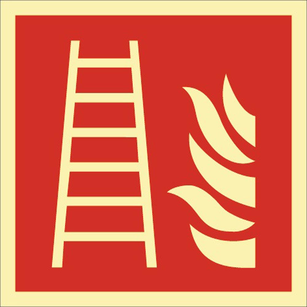 selbstklebende Folie · Symbol und Lichtkante langnachleuchtend · nach neue ASR A1.3/DIN EN ISO 7010 und DIN 67510 · Feuerleiter
