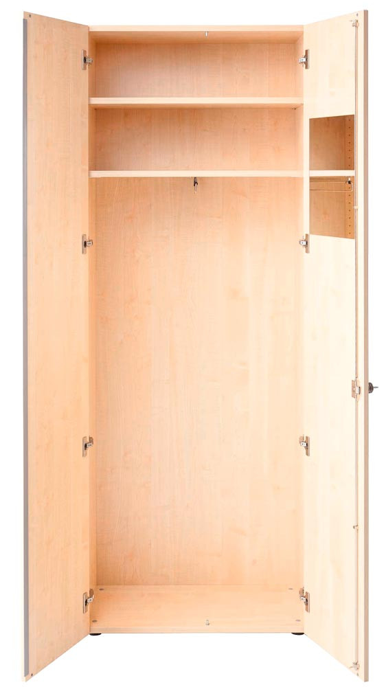 Büro-Flügeltürenschrank, mit GarderobeBxTxH 800x420x2156 mm, 6 OH, 2 Böden, ahorn