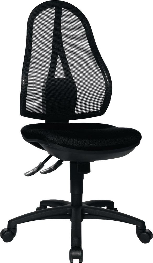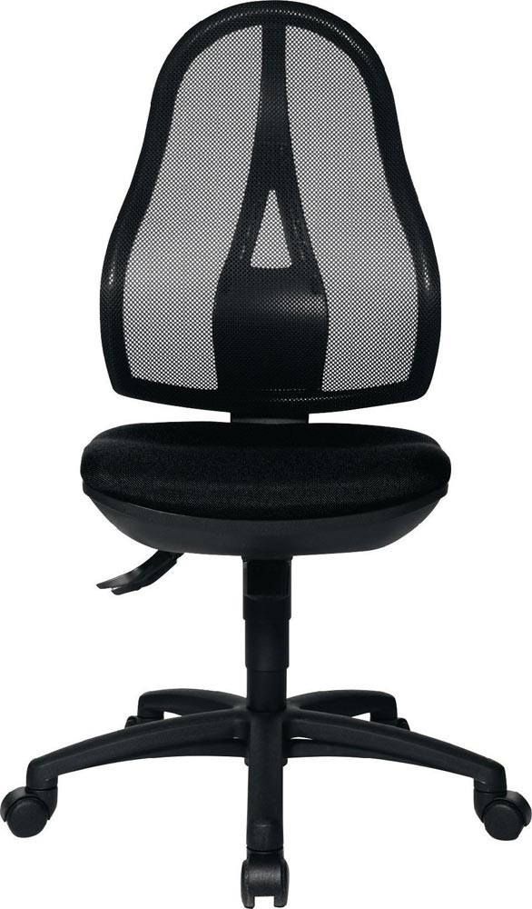 mit Punkt-Synchron-Technik (ohne Armlehnen) · für überwiegend sitzende Tätigkeiten ∙ stabiles Polyamid-Fußkreuz schwarz · Sitz und Rückenlehne neigen sich synchron, in gleichbleibendem Winkel · Rückenlehne mit atmungsaktivem Netzbezug 100 % Polyester, schwarz, in Höhe und Neigung verstellbar · stufenlos höhenverstellbar · mit Bandscheibensitz · Sitzbezug aus 100 % Polypropylen · Sitzfläche B 480 x T 480 mm · Lehnenhöhe 600 mm · Doppelrollen für weiche Böden