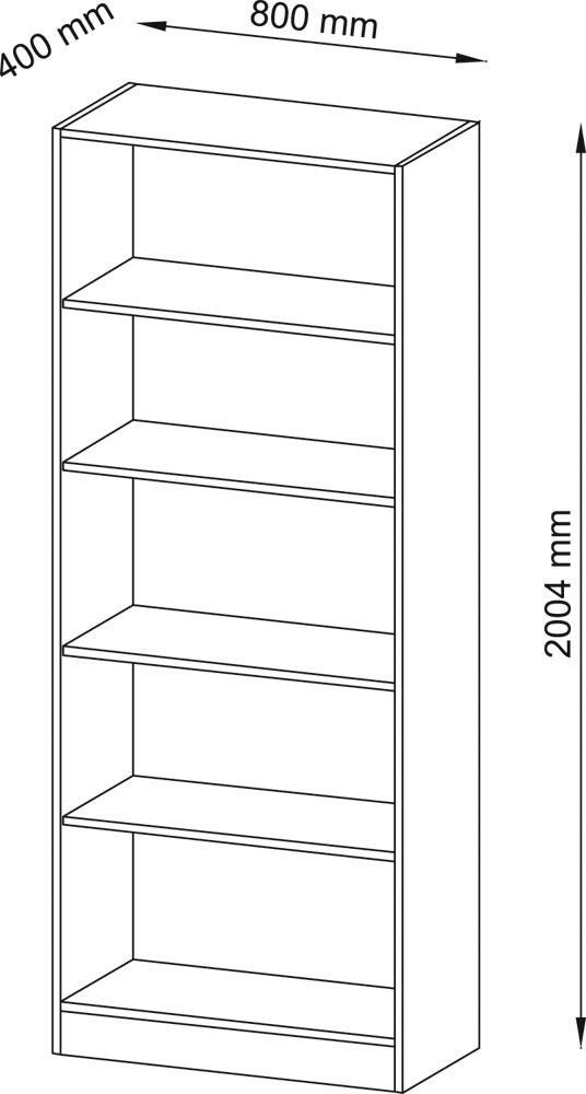 Büroregal, BxTxH 800x400x2004 mm, 5 OH, 4 Böden, weiß