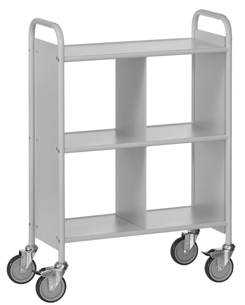 Bürowagen, 3 Böden, Mittelwand, Seitenwände, LxBxH 810x385x1100 mm, Traglast 150 kg, lichtgrau/hellgrau