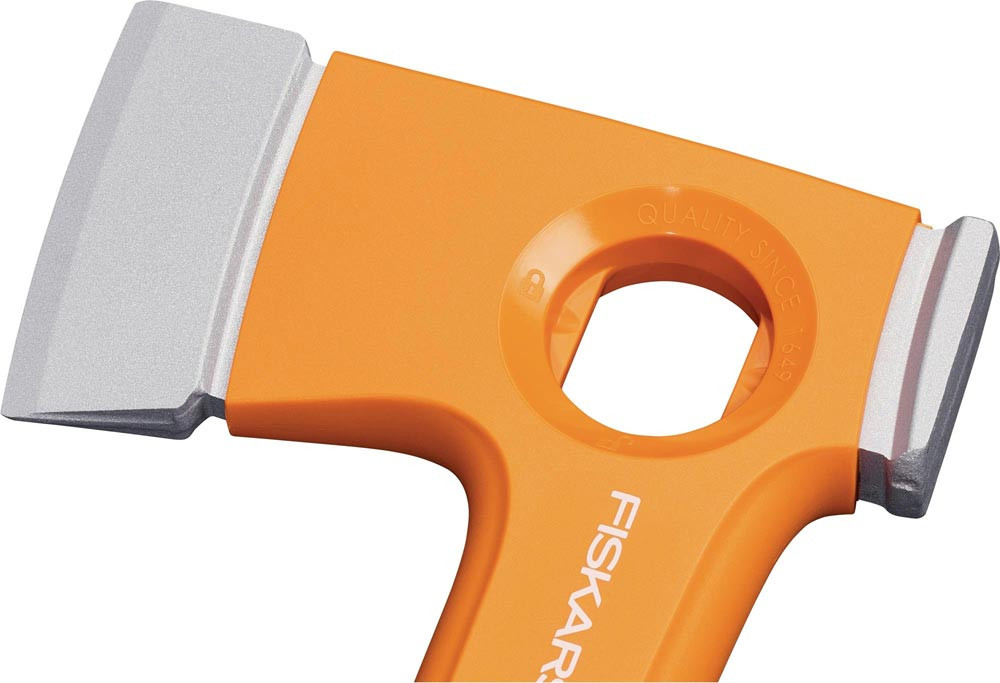 ultraleichte, kompakte Axt für das Zerkleinern von Holz bei Camping und Freizeit · beschichtete und doppelt gehärtete Fiskars-Spezialklinge · leuchtend orangefarbener FiberComp-Griff, extrem leicht · spezielle Axtkopfrückseite als Hammerfunktion