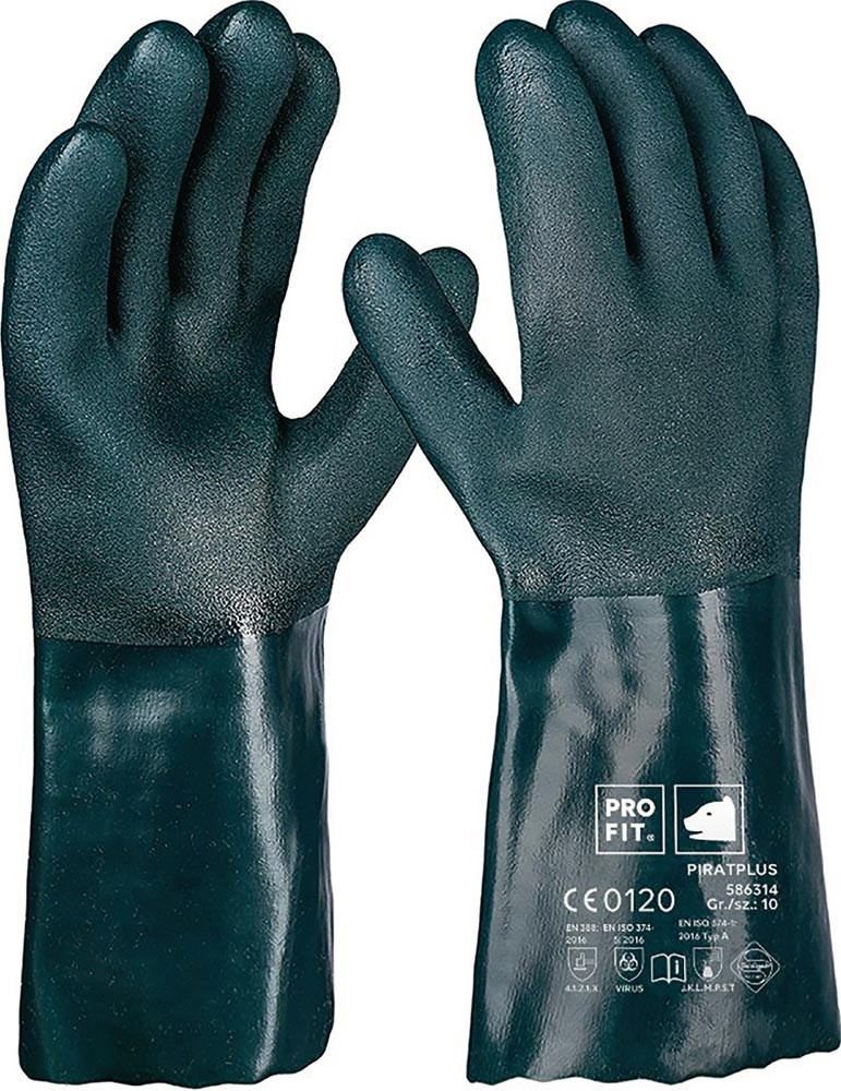 Chemikalienschutzhandschuhe Pirat Größe 10 grün PVC EN 388, EN ISO 374-1 PSA-Kategorie III