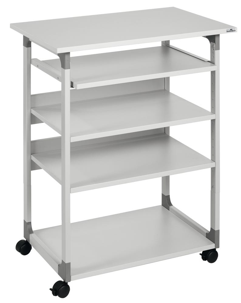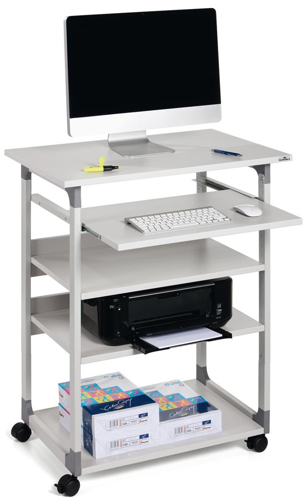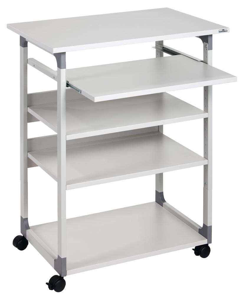 Computertisch, BxTxH 750x534x950-1150 mm, 4 Böden, höhenverstellbarer Tastaturauszug, fahrbar, lichtgrau