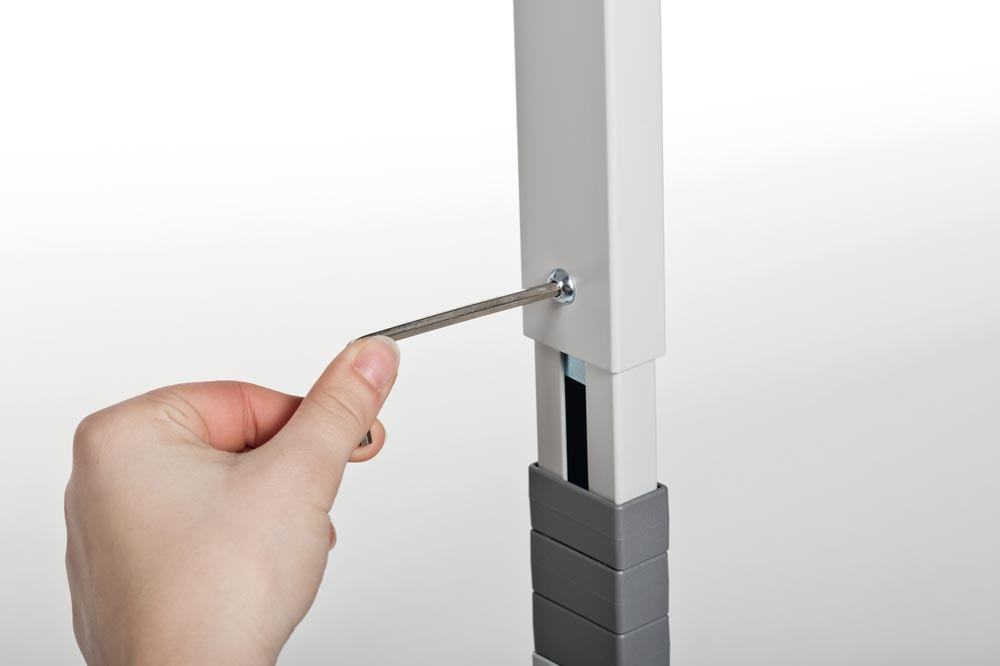 · Tischplatte, höhenverstellbar von 950 bis 1150 mm im 20 mm Raster · Tastaturauszug, höhenverstellbar bis 1005 mm im 30 mm Raster · 3 Ablageböden, höhenverstellbar im 30 mm Raster