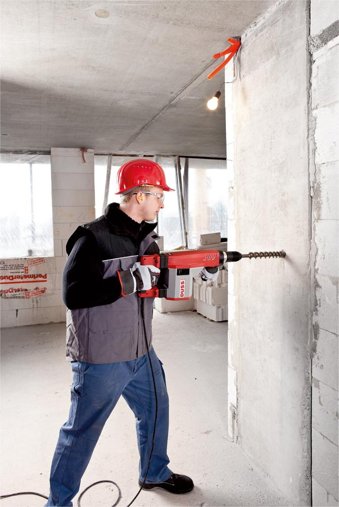 Ausführung: Kombihammer für mittelschwere Meißelarbeiten, Durchführungsbohrungen, sowie Schlitzen von Leitungskanälen ∙ Konstant hohe Bohr- und Meißelleistung ∙ Stufenlose Dreh- und Schlagkraftregulierung ∙ "SDS-max"-Werkzeugaufnahme mit 20-facher Meißelfixierung ∙ Verschleißarme Sicherheits-Rollenkupplung ∙ Wartungsfrei durch Dauerschmierung ∙ Aktive Vibrationsdämpfung (RVA)
