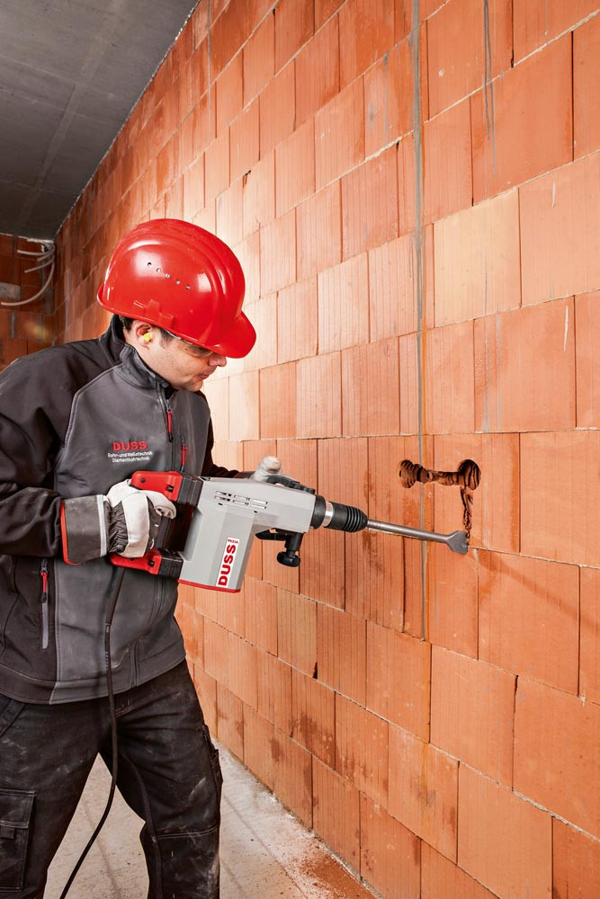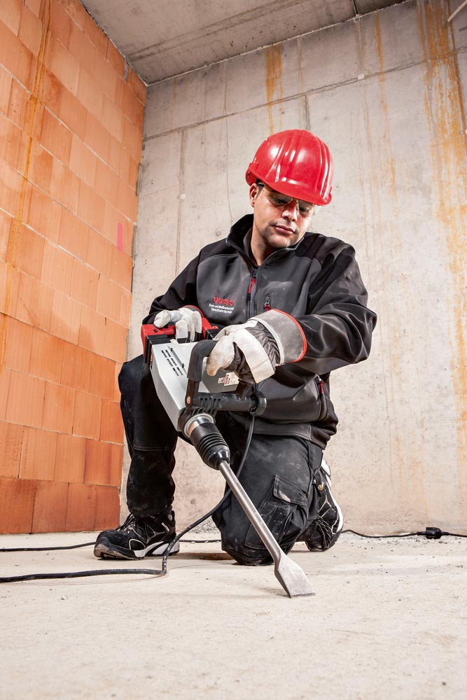 Ausführung: Kompakter und robuster Meißelhammer für konstant hohe Meißelleistung ∙ Stufenlose Schlagzahlregelung ∙ Elektro-pneumatisches-Schlagwerk mit Absenkung der Leerlauf-Schlagzahl ∙ "SDS-max"-Werkzeugaufnahme mit 20facher Meißelfixierung ∙ Aktive Vibrationsdämpfung (RVA) ∙ Wartungsfrei durch Dauerschmierung