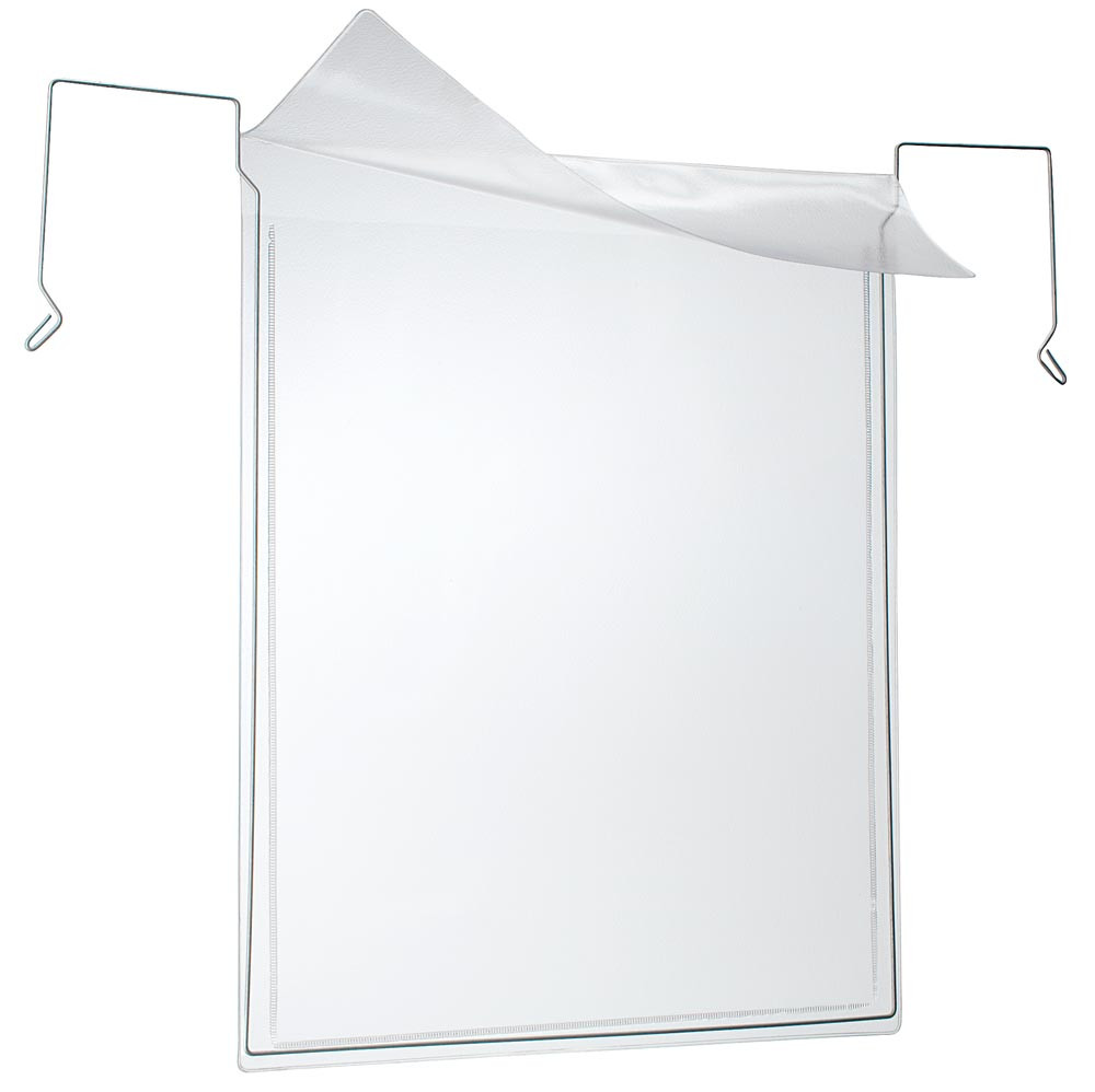 · Mit Klappe ∙ Hinterfolie: 180 µ klare Weich-PVC-Folie ∙ Vorderfolie: 140 µ klare Weich-PVC-Folie ∙ Aufhängebügel aus verzinktem Federstahl · Farbe transparent ∙ VE 20 Stück