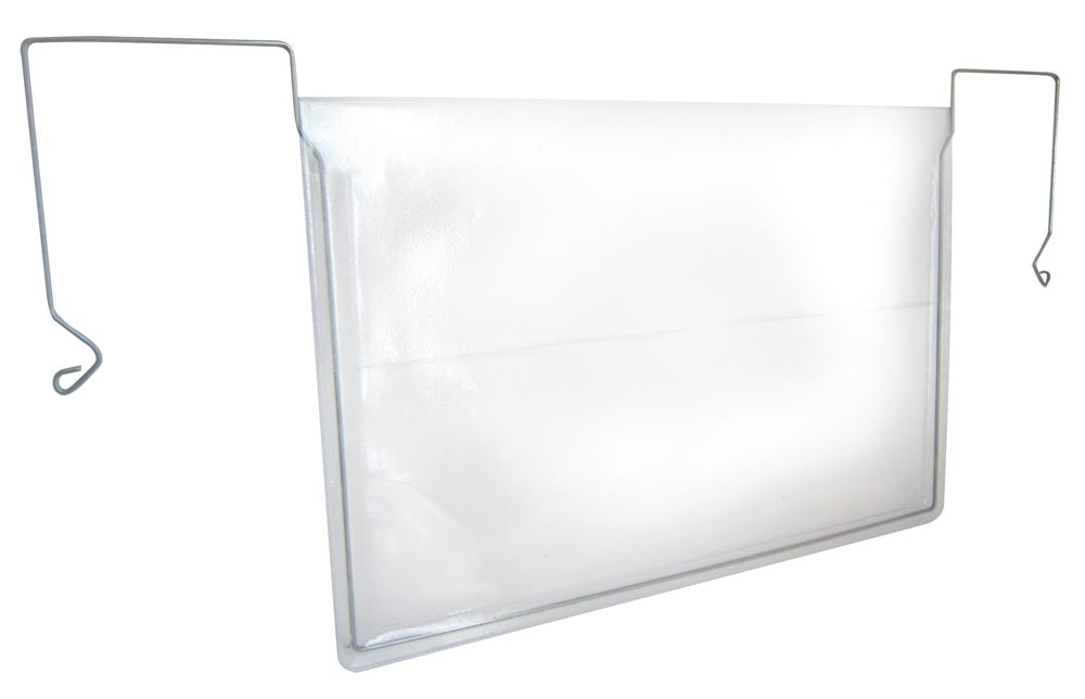 · Mit Klappe ∙ Hinterfolie: 180 µ klare Weich-PVC-Folie ∙ Vorderfolie: 140 µ klare Weich-PVC-Folie ∙ Aufhängebügel aus verzinktem Federstahl · Farbe transparent ∙ VE 20 Stück