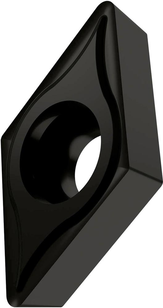 Einseitige positive Drehwendeschneidplatte · 55° Rhombisch mit 7° Freiwinkel · Innenkreisdurchmesser von 9.525mm · 3.97mm Dick · 0.8mm Radius · Indexgenauigkeit nach ISO-Toleranzklasse-G · Spanbrecher NF1 mit verrundeter Schneidkante · im Substrat T7325 · MT-CVD beschichtet functionally graded WC-Co carbide in den ISO-Bereichen M10 -M25 und S10 -S25 · zum schlichten bis medium bearbeiten von nichtrostenden Stählen und Superlegierungen