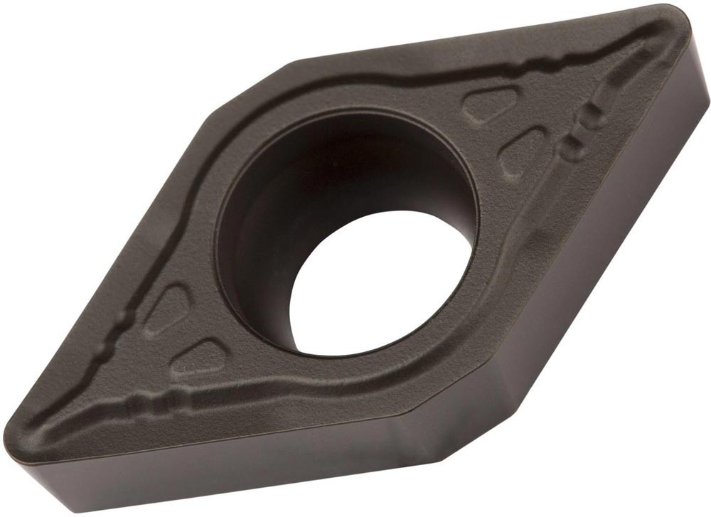 Einseitige positive Drehwendeschneidplatte · 55° Rhombisch mit 7° Freiwinkel · Innenkreisdurchmesser von 9.525mm · 3.97mm Dick · 0.8mm Radius · Indexgenauigkeit nach ISO-Toleranzklasse-M · Spanbrecher UR mit verrundeter Schneidkante · im Substrat T7325 · MT-CVD beschichtet functionally graded WC-Co carbide · zum schlichten bis schruppen bearbeiten