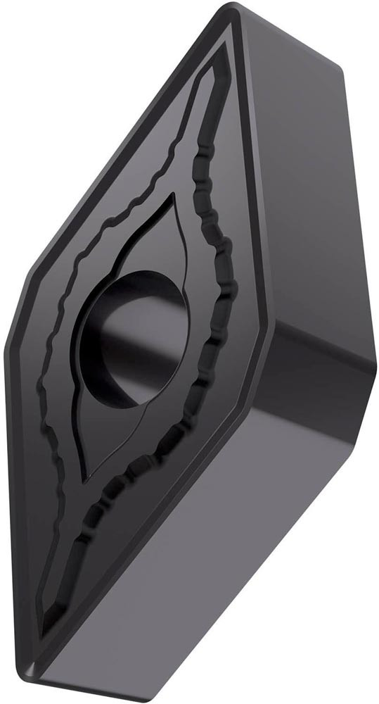 Doppelseitige negative Drehwendeschneidplatte · 55° Rhombisch mit Innenkreisdurchmesser von 12.7mm · 4.76mm Dick · 0.8mm Radius · Indexgenauigkeit nach ISO-Toleranzklasse-M · Spanbrecher SM mit verrundeter Schneidkante · im Substrat T6310 · PVD beschichtet WC-Co Feinstkornsubstrat in den ISO-Bereichen P01 -P15/M01 -M15/K05 -K20 und S01 -S15 · zum schlichten bis schruppen bearbeiten von Stählen · nichtrostenden Stählen · Gusseisen und Superlegierungen