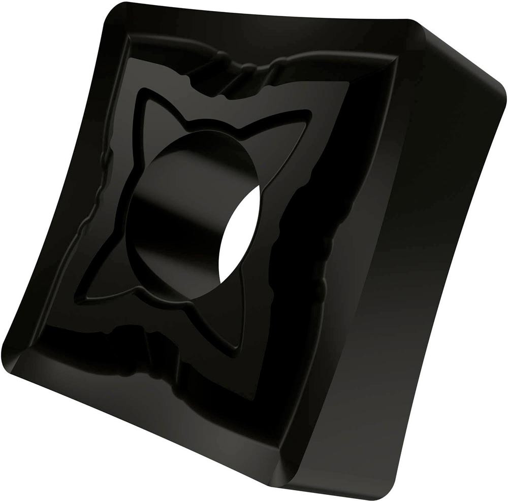 Doppelseitige negative Drehwendeschneidplatte · Viereckig mit Innenkreisdurchmesser von 12.7mm · 4.76mm Dick · 0.8mm Radius · Indexgenauigkeit nach ISO-Toleranzklasse-M · Spanbrecher SF mit verrundeter Schneidkante · im Substrat T9325 · MT-CVD beschichtet functionally graded WC-Co carbide in den ISO-Bereichen P15 -P35 und M10 -M30 · zum schlichten bis medium bearbeiten von Stählen und nichtrostenden Stählen