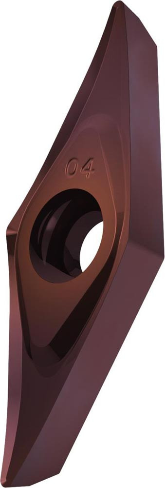 Einseitige positive Drehwendeschneidplatte · 35° Rhombisch mit 7° Freiwinkel · Innenkreisdurchmesser von 7.94mm · 3.18mm Dick · 0.4mm Radius · Indexgenauigkeit nach ISO-Toleranzklasse-G · Spanbrecher SF3 mit verrundeter Schneidkante · im Substrat T8415.