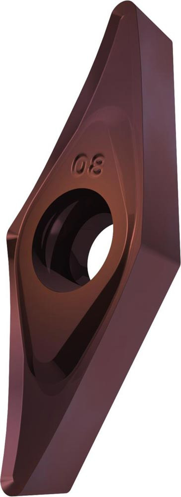 Einseitige positive Drehwendeschneidplatte · 35° Rhombisch mit 7° Freiwinkel · Innenkreisdurchmesser von 7.94mm · 3.18mm Dick · 0.8mm Radius · Indexgenauigkeit nach ISO-Toleranzklasse-G · Spanbrecher SF3 mit verrundeter Schneidkante · im Substrat T8415.