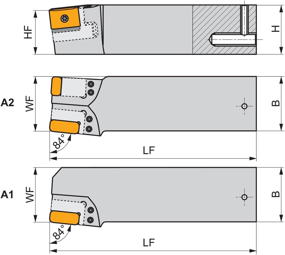 Grundhalter für modulares Drehsystem zum spannen von rechte Ausführung KTP-(CLS)ANR und linke Ausführung KTP-(CLS)FNL Dreheinsatz · Schaftgröße 50mm x 55mm · 210mm Länge für Radsatzbearbeitung