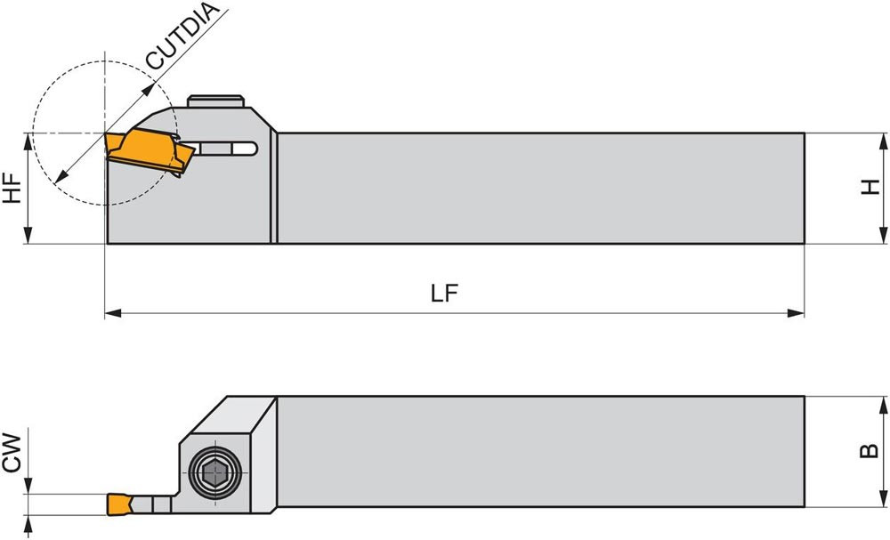 Einstechwerkzeug von oben geklemmt zum spannen einer 16.4mm langen doppelt oder einseitigen Wendeschneidplatte mit 3mm Schnittbreite (Bezeichnung LCM. 0316.. ) · linke Ausführung mit Wendeschneidplatte parallel zum Schaft für einen maximalen Stechdurchmesser von 18mm · Schafthöhe 16mm · Breite 16mm und Werkzeuglänge 100mm zum Mehrweg Kopierdrehen · flaches und tiefes radiales Einstechen · radiales Stechdrehen · Abstechen und Rohr-Abstechen